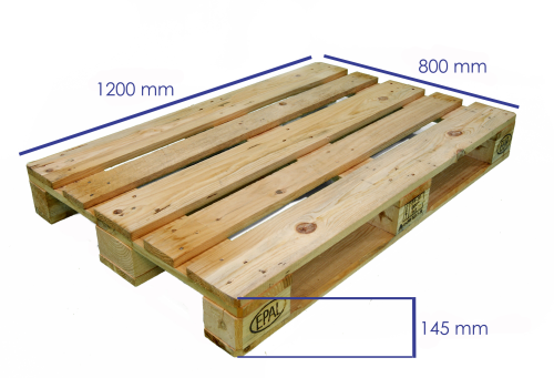 Al europalet también se le llama palé o palet europeo y sus medidas exteriores son 1200 x 800 x145 mm.